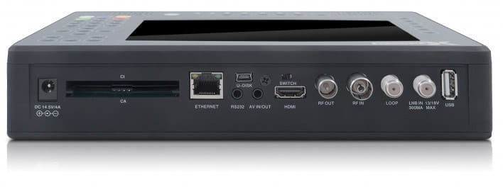 To nie tylko miernik, to przenośny, 7-calowy telewizor LED z wbudowanymi tunerami DVB-T, DVB-C, DVB-S2 z czytnikiem Conax i gniazdem CI.