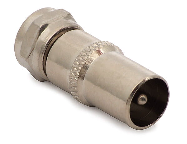Przejście z wtyku F na wtyk antenowy wykorzystywane w instalacjach antenowych różnego typu.