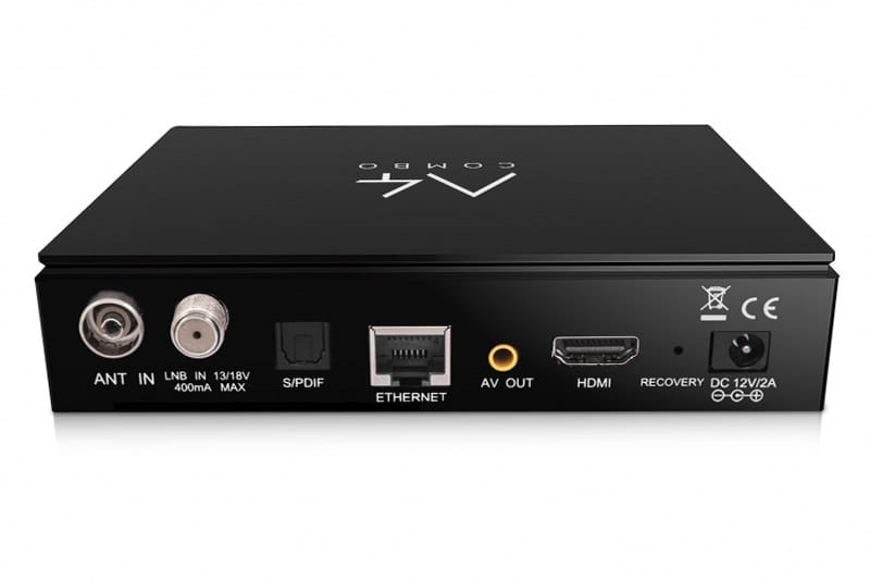 Amiko A4K Combo jest tunerem najnowszej generacji dającym możliwość odbioru sygnałów z różnych źródeł. A4K możemy podłączyć do anteny satelitarnej DVB-S2 i oglądać zarówno kanały niekodowane (FTA) jak i ofertę płatną. Tuner ma wbudowany czytnik kart Conax - możemy zatem włożyć do niego np. kartę Smart HD+. Oprócz odbioru kanałów satelitarnych możemy również podłączając antenę naziemną i korzystać z oferty kanałów naziemnych DVB-T (A4K obsługuje również nowszy standard DVB-T2). Trzecim źródłem może być również telewizja kablowa DVB-C.