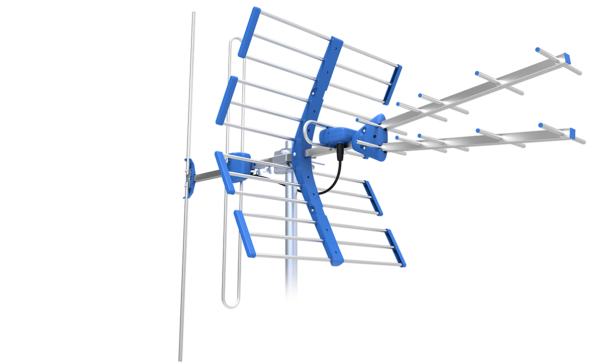 Antena w polaryzacji poziomej dla UHF i pionowej dla VHF