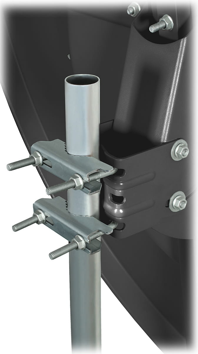 Zestaw zawiera dedykowany uchwyt do drugiego konwertera, dzięki czemu sygnał satelitarny może być odbierany z dwóch lokalizacji satelitarnych.