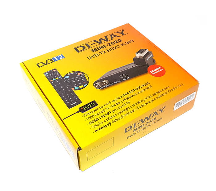 DI-WAY mini 2020 DVB-T2/T HEVC H.265 to propozycja odbiornika do telewizji naziemnej. Tuner wspiera nowy standard DVB-T2 H.265 i jest kompatybilny z sytemem DVB-T H.264. Cechą wyróżniającą są niewielkie wymiary i możliwość podłączenia zewnętrznego czujnika pilota. Pozwala to umieścić tuner np. za telewizorem wiszącym na ścianie. Na czujniku pilota znajduje się 4-segmentowy wyświetlacz, który pokazuje numer aktualnie oglądanego kanału, a gdy odbiornik jest w stanie czuwanie to wyświetlana jest aktualny godzina.