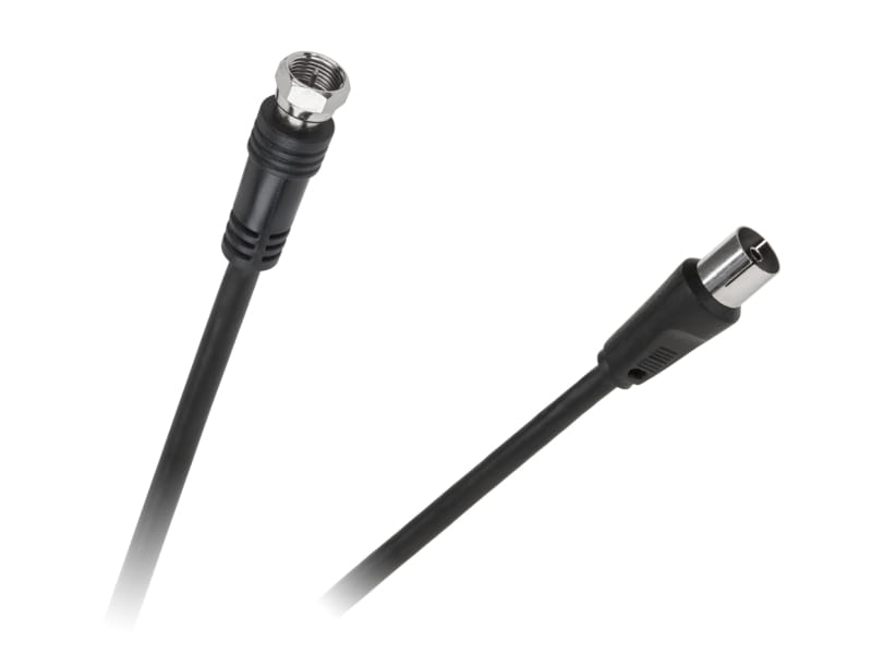 Klasyczny kabel antenowy z dwoma złączami. Z jednej strony wtyk telewizyjny,a z drugiej strony wtyk F.