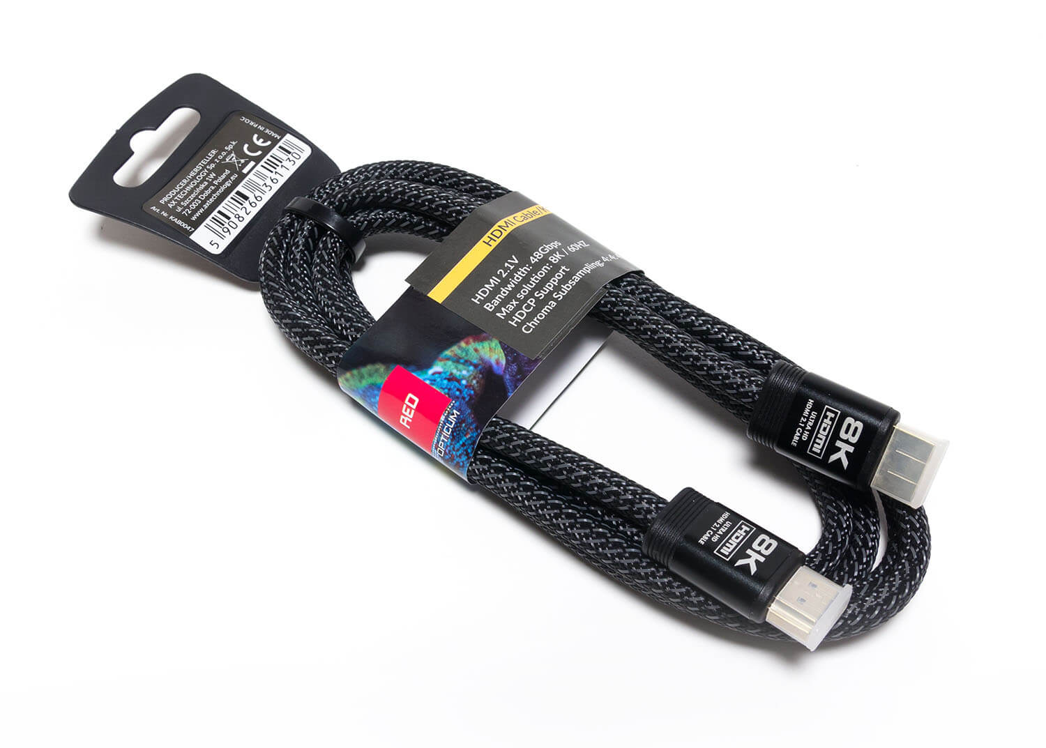 Główne cechy kabla HDMI 1,8m v2.1 8K UHD Opticum Red:
