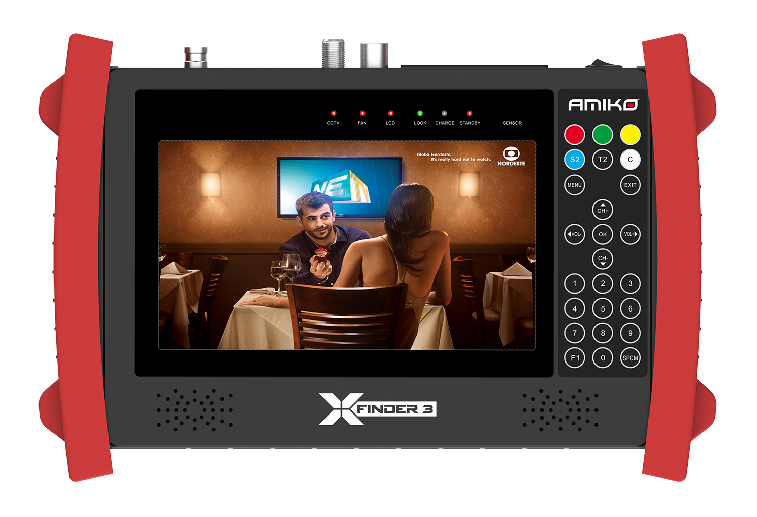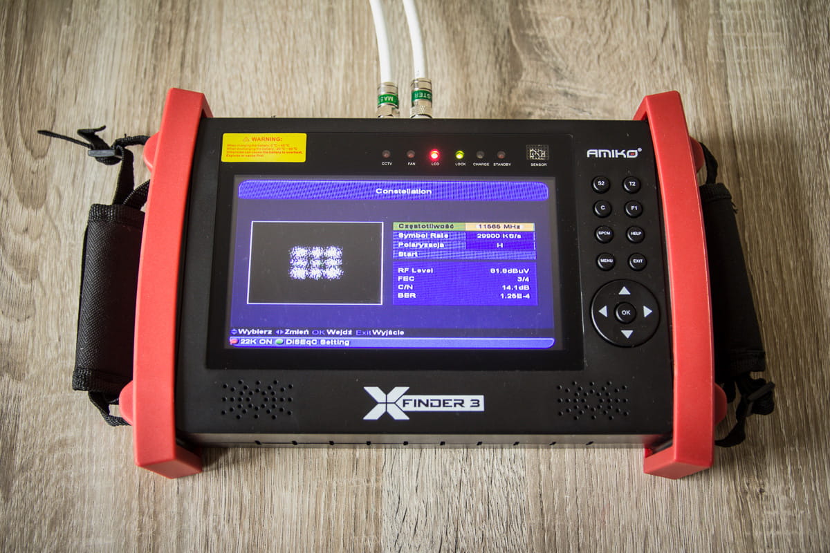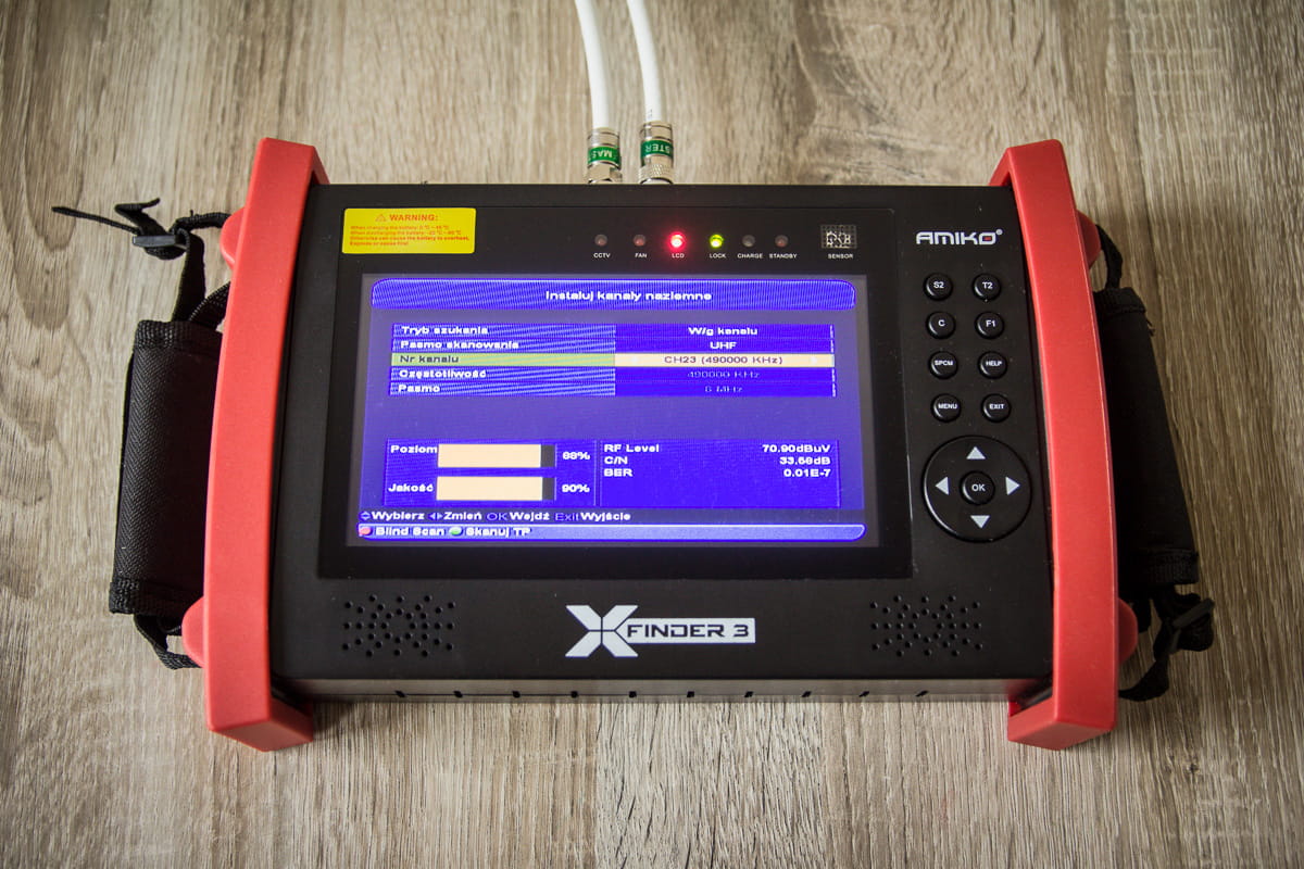 Miernik Amiko X-Finder 3 to nie tylko urządzenie do wskazywania poziomu sygnału telewizji cyfrowej, to 7-calowy przenośny telewizor z wbudowanym tunerem naziemnym, satelitarnym i kablowym. Dzięki niemu nie tylko zobaczysz suche parametry ale również obejrzysz na ekranie obraz odbieranej telewizji.