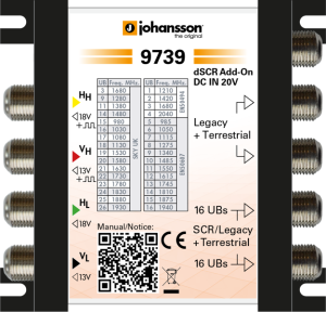 Multiswitch Unicable 4/2 Johansson 9739 to urządzenie, które umożliwia rozbudową istniejącej instalacji multiswitchowej o sygnał Unicable SCR. Produkt posiada 4 wejścia dla konwertera Quad lub Quattro i 4 wyjścia z czego 2 z nich to wyjścia z sygnałem Unicable plus sygnał telewizyjny/radiowy, który możemy podzielić na maksymalnie 16 odbiorników każde. Kolejne dwa wyjścia to sygnał legacy (nie unicable) plus sygnał telewizyjny/radiowy. Do tych wyjść możemy podłączyć tunery (dekodery) satelitarne, które nie obsługują standardu Unicable.
