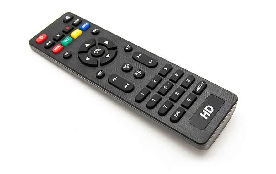 Do tunera dołączony jest zgrabny, dobrze leżący w dłoni pilot z ergonomicznie rozmieszczonym przyciskami. Do zasilania służą dwie baterie typu AAA (w zestawie).