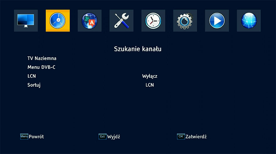 Wygląd menu wyszukiwania kanałów Opticum AX Lion 5-M HYBRID: