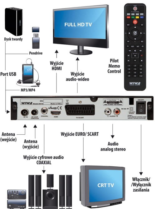 Schemat możliwości połączeń tunera Wiwa HD 102 memo control