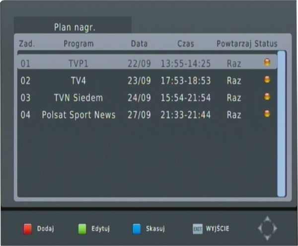 funkcja planowania nagrywania - możliwość wytypowania programów do nagrania z automatycznym uruchomieniem się programu telewizyjnego