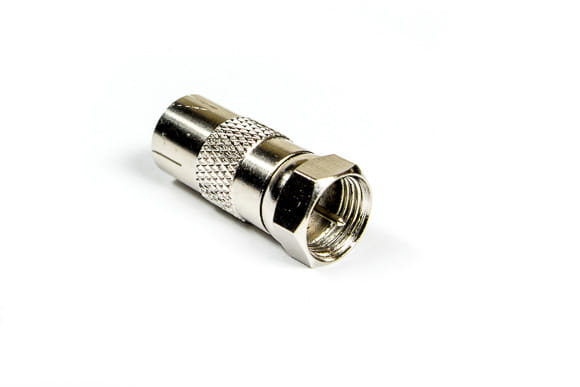 Przejściówka z wtyku F na gniazdo antenowe TV.
