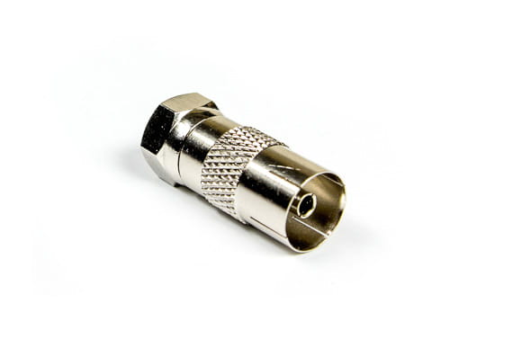 Przejściówka z wtyku F na złącze antenowe TV (gniazdo).