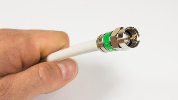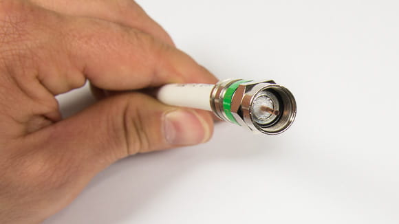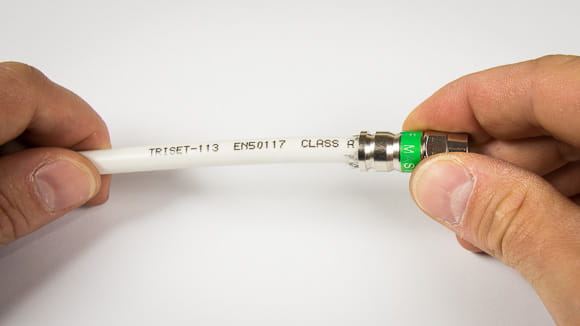 Na przygotowany kabel nasuwamy złącze kompresyjne F.
