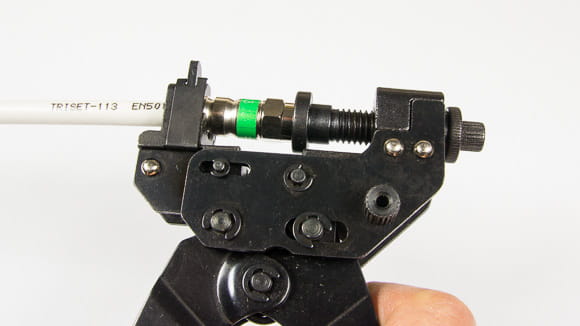 Zaciskamy złącze za pomocą zaciskarki do złącz kompresyjnych