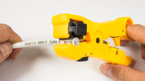 Przygotowujemy kabel koncentryczny narzędziem do ściągania izolacji ABI 212.