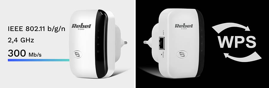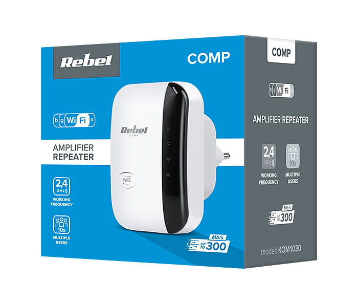 Cechy produktu Repeater - wzmacniacz sieci bezprzewodowej REBEL KOM1030: