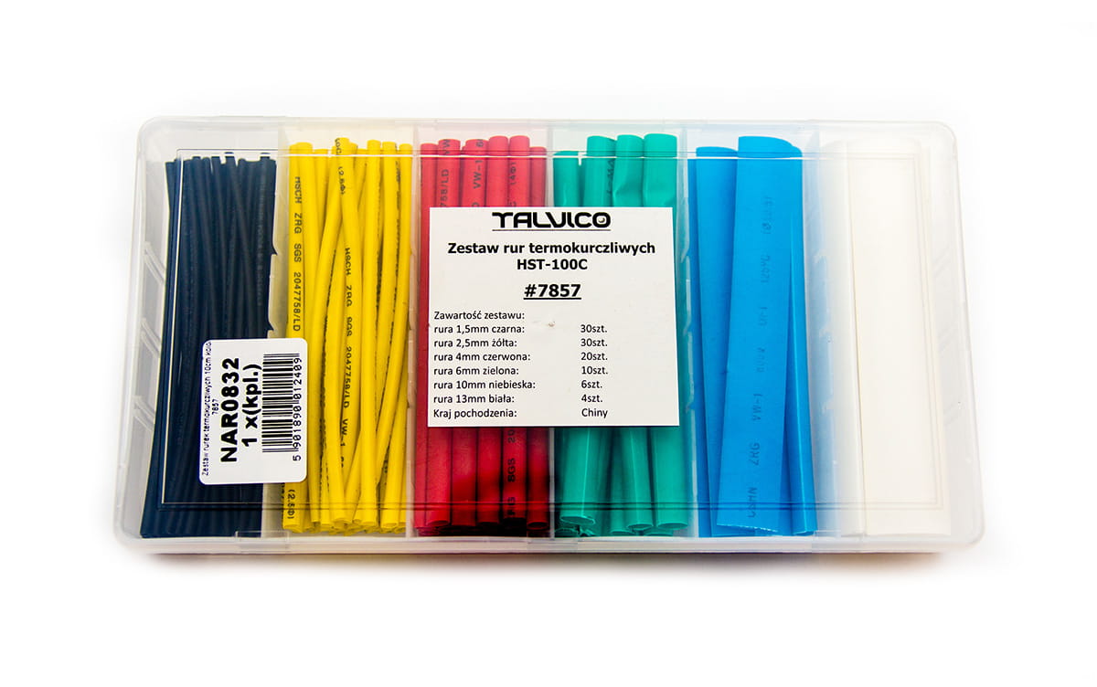 W skład zestawu wchodzą następujące rurki termokurczliwe o długości 100 mm: