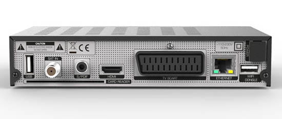 Na tylnym panelu znajdziemy złącze Ethernet, które pozwala na podłączenie odbiornika do domowej sieci LAN, dzięki czemu uzyskamy możliwość aktualizacji oprogramowania, bezpośrednio z serwerów producenta.