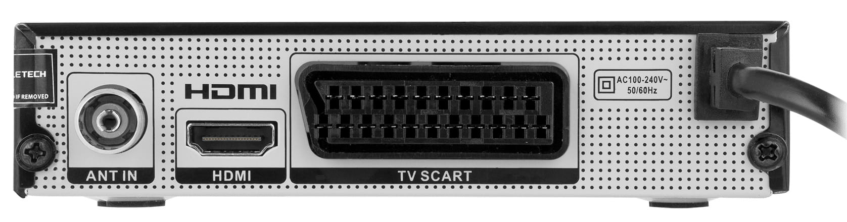 Tuner po podłączeniu anteny naziemnej odbiera wszystkie multipleksy. Do podłączenia tunera z telewizorem można wykorzystać kabel HDMI lub SCART.