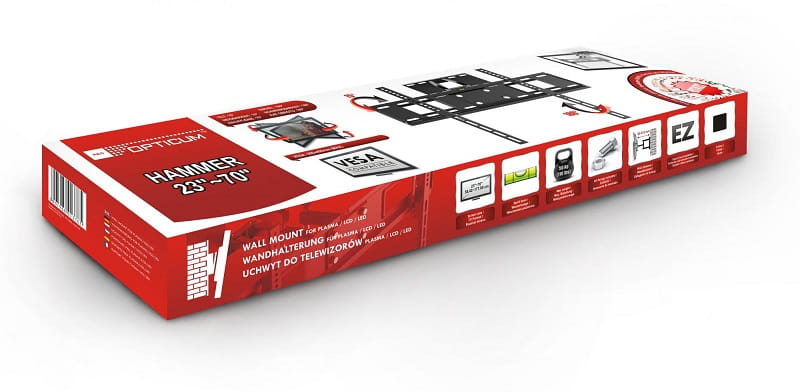Uchwyt TV 23 - 70" AX Hammer pozwala na zamontowanie na ścianie telewizora LCD, LED lub Plazma od rozmiaru 23 cali do rozmiaru 70 cali i wadze do 50kg. Specjalnie zaprojektowana wytrzymała konstrukcja pozwala na bezpieczne użytkowanie.
