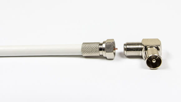 Aby zamontować wtyk TV kątowy na kablu potrzebujemy dodatkowo złącze F