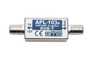 Wzmacniacz APL-103e jest przeznaczony do wzmacniania sygnałów w paśmie VHF III (kanały 6-12) oraz w paśmie UHF IV (kanały 21-60). Wzmacniacz wymaga zasilania 12V, które można zrealizować za pomocą zasilacza 12V lub też zasilacza z regulacją napięcia. Zasilanie można również zrealizować przy pomocy separatora napięcia z zasilaczem zamontowanego w dowolnym miejscu.
