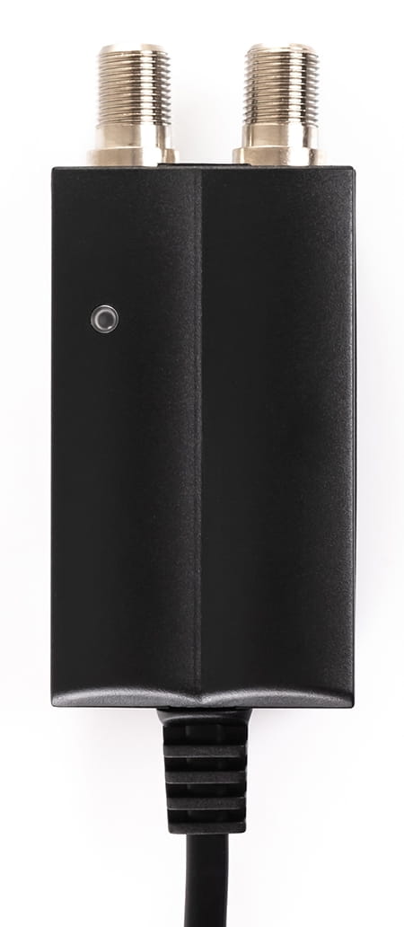 Zasilacz posiada 1 wejście i 1 wyjście zakończone gniazdem typu F. Wyposażony jest w separator zasilania umożliwiający przesyłanie napięcia do wzmacniacza tym samym przewodem, którym doprowadzany jest sygnał z anteny do odbiornika. Poprawna praca zasilacza sygnalizowana jest świeceniem diody kontrolnej na obudowie zasilacza.
